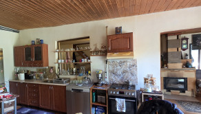 Na prízemí sa nachádza veľká kuchyňa s jedálňou, obývačka s krbom, WC, sprchový kút a chodba.