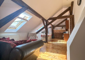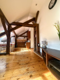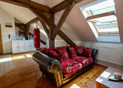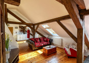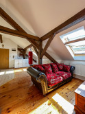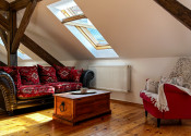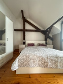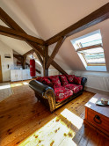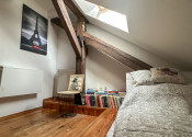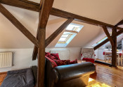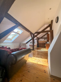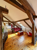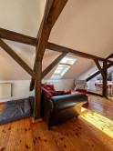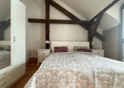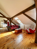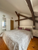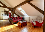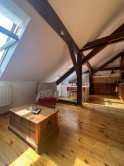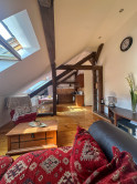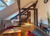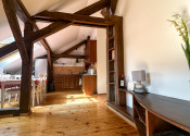 Byt kombinuje čaro starého mesta s moderným komfortom – priznané drevené trámy, vysoké stropy a dostatok svetla mu dodávajú jedinečnú atmosféru.