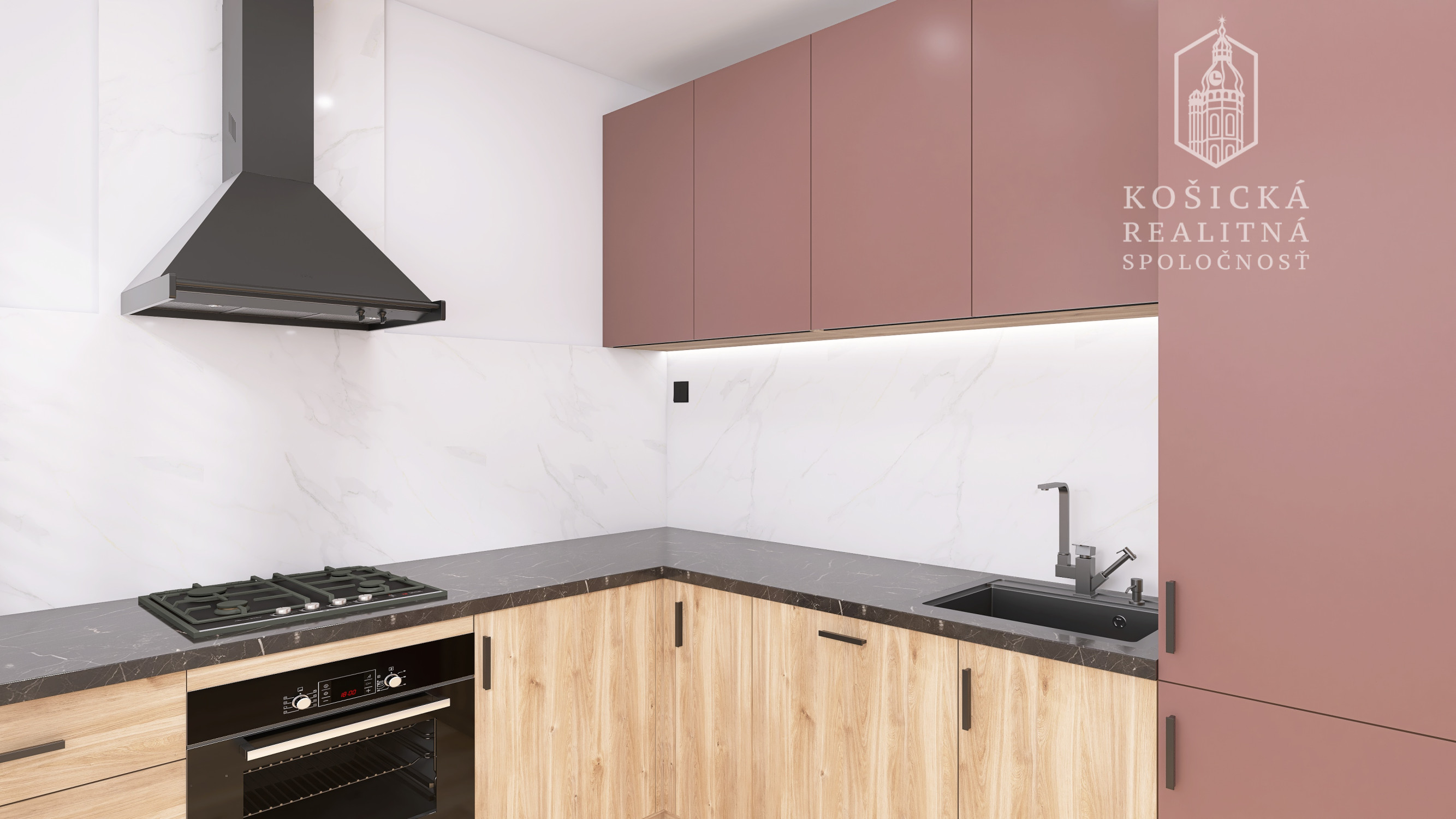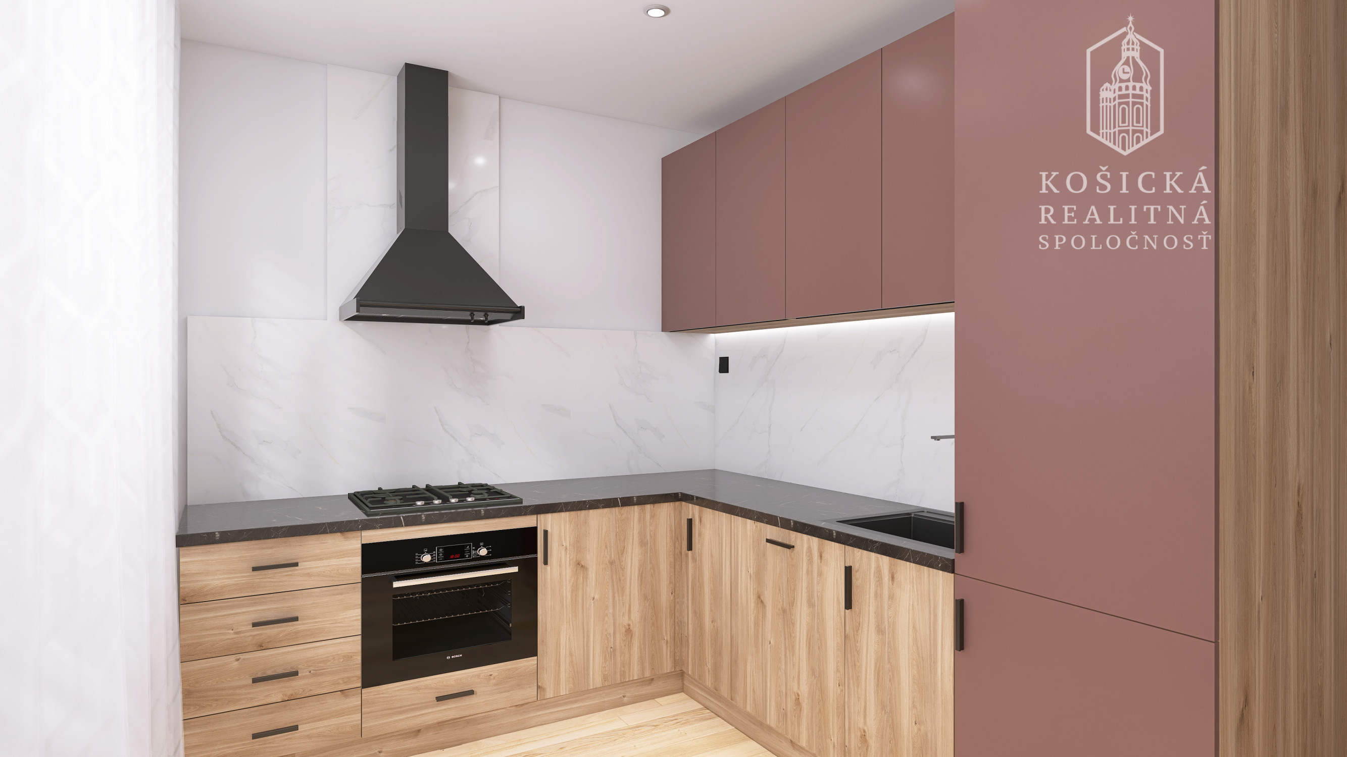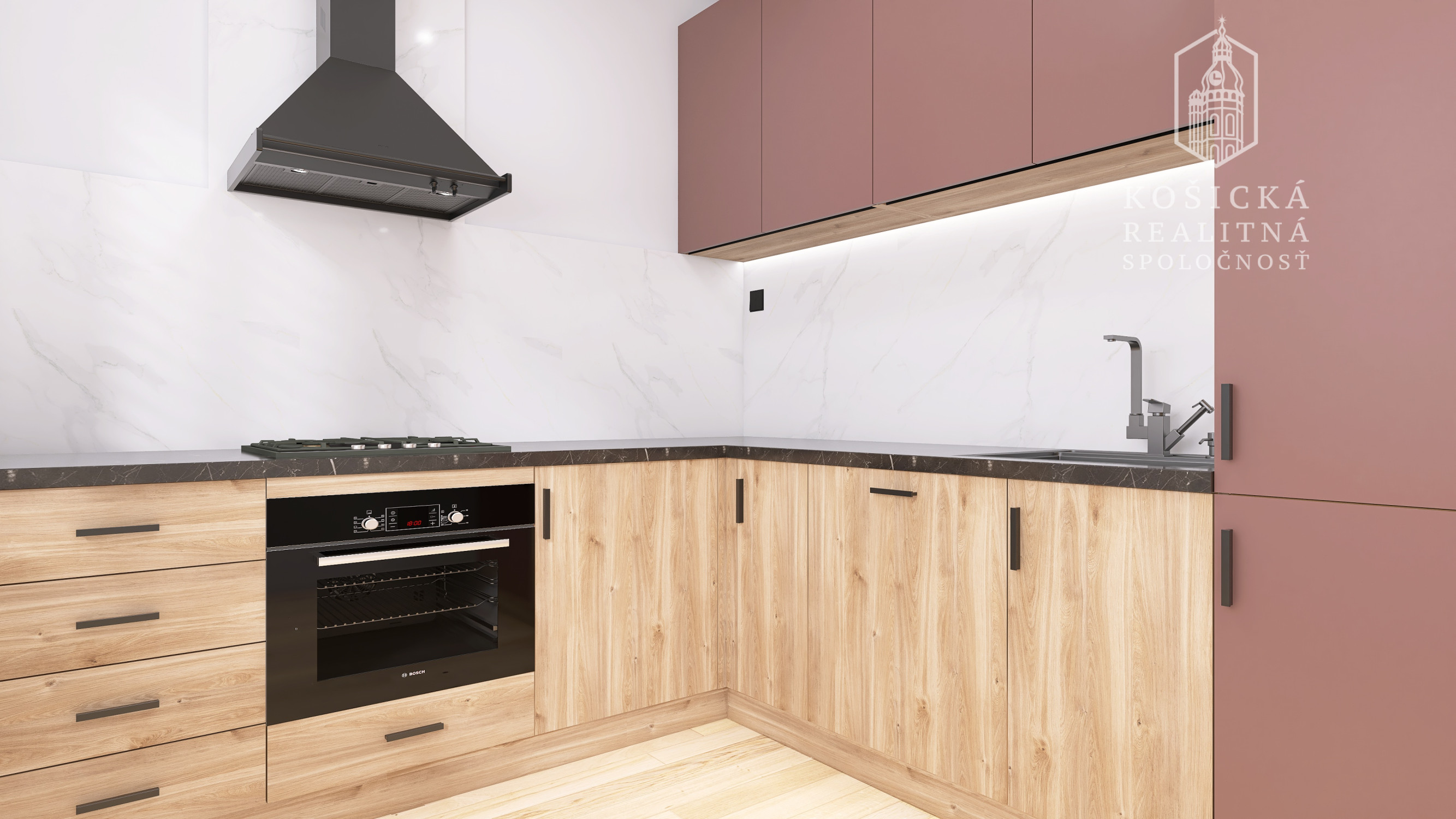 Dominantou bytu bude nová kuchynská linka vyrobená na mieru so vstavanými spotrebičmi vrátane: